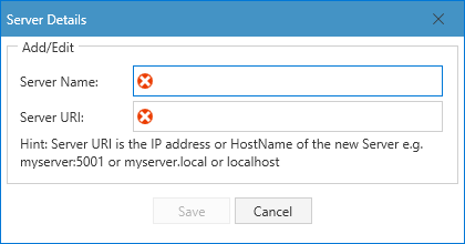 When adding a server manually or editing a pre-existing server’s details the Add/Edit server dialogue box will appear. The Server Name and URI can then be added or modified here.