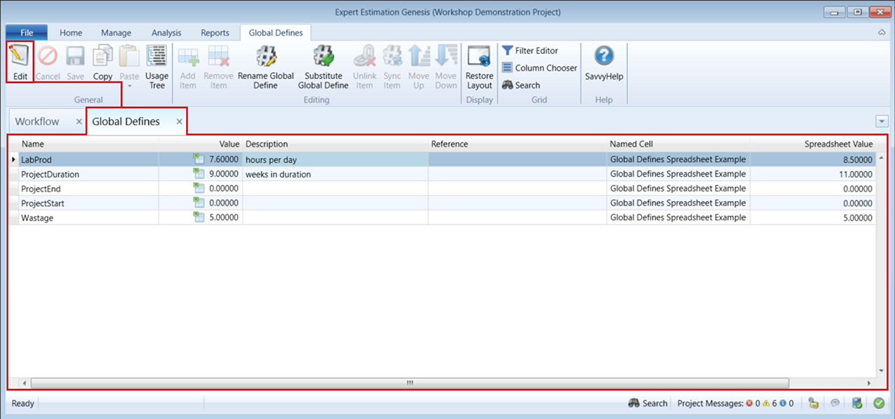 - While a Global Define is linked to a spreadsheet it’s name is restricted from being changed.