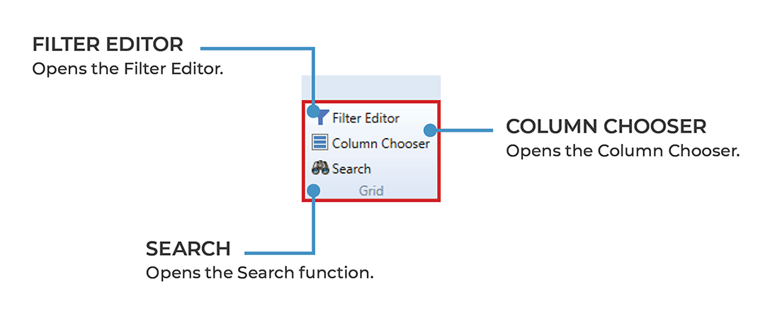 Opens the Filter Editor to allow users to modify the contents of the grid so that only items that match the specific criteria set will be displayed. |