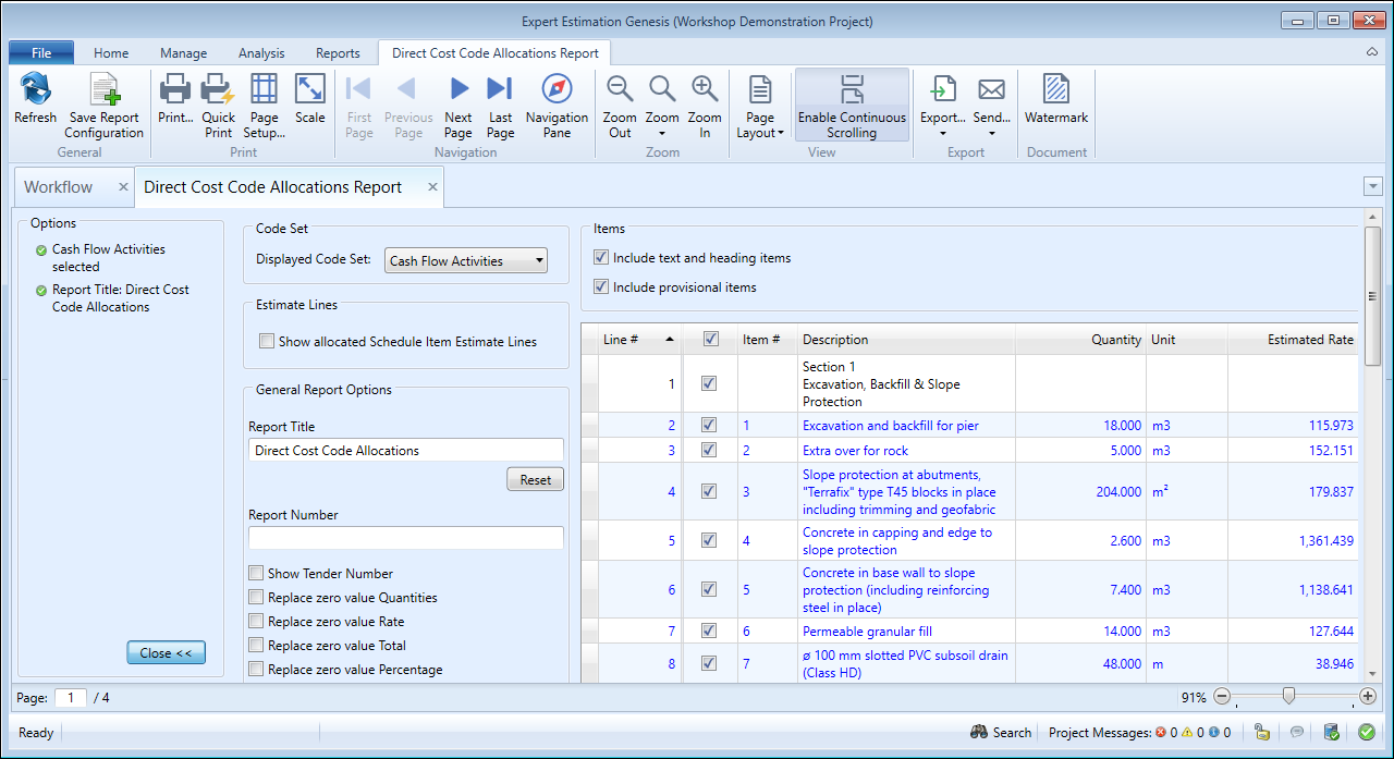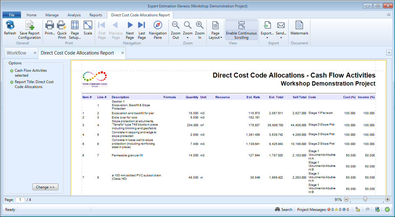 Direct Cost Code Allocations Report - formatting options