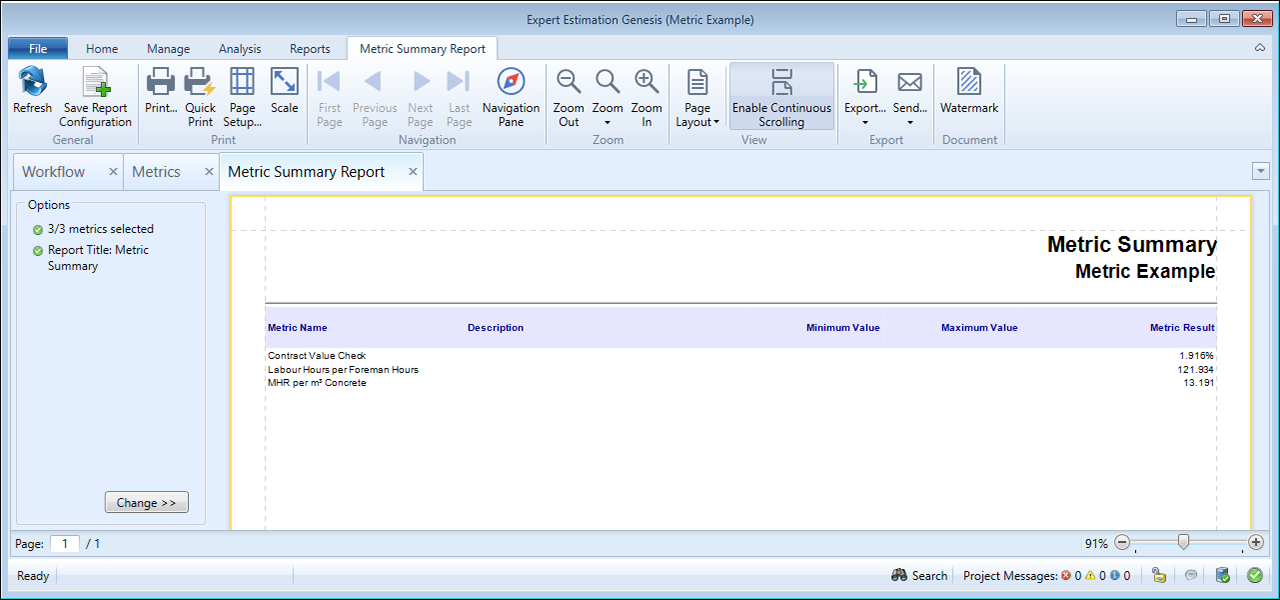 The Metric Summary report provides a printable breakdown of the Metrics in the current project so that you can analyse the data from a top level.