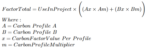 The formula below shows how the Carbon Factor Totals are calculated when Carbon Emission Profiles are used within the project.