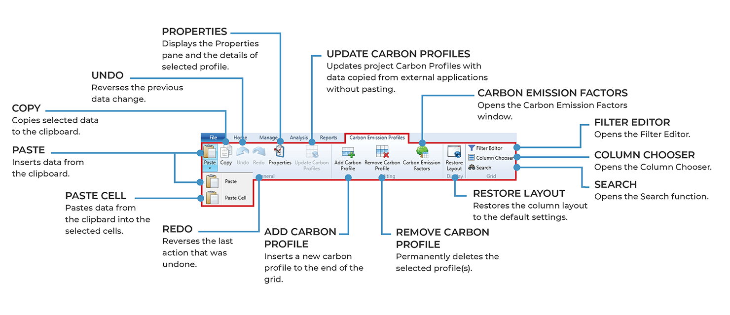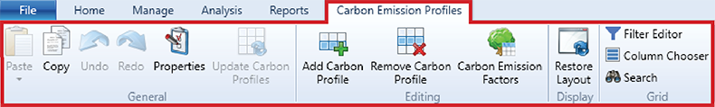 Carbon Emission Profiles - Ribbon Toolbar
