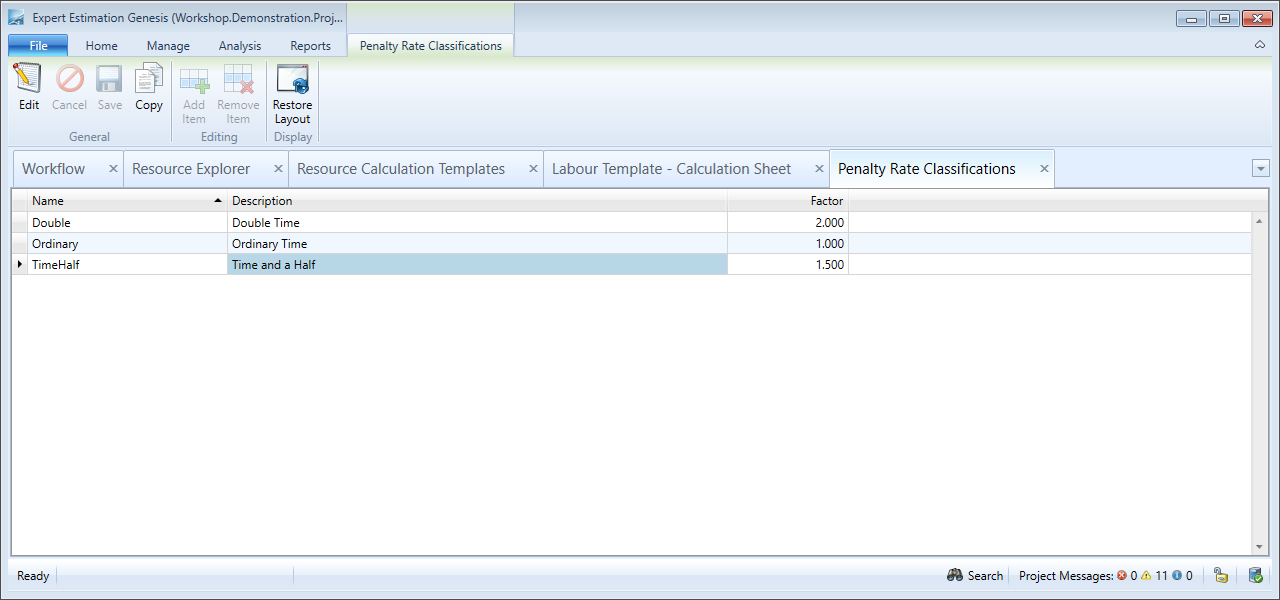 Some Penalty Rates that are typically included for reference in template calendars are time-and-a-half with a factor of 1.5, double-time with a factor of 2.