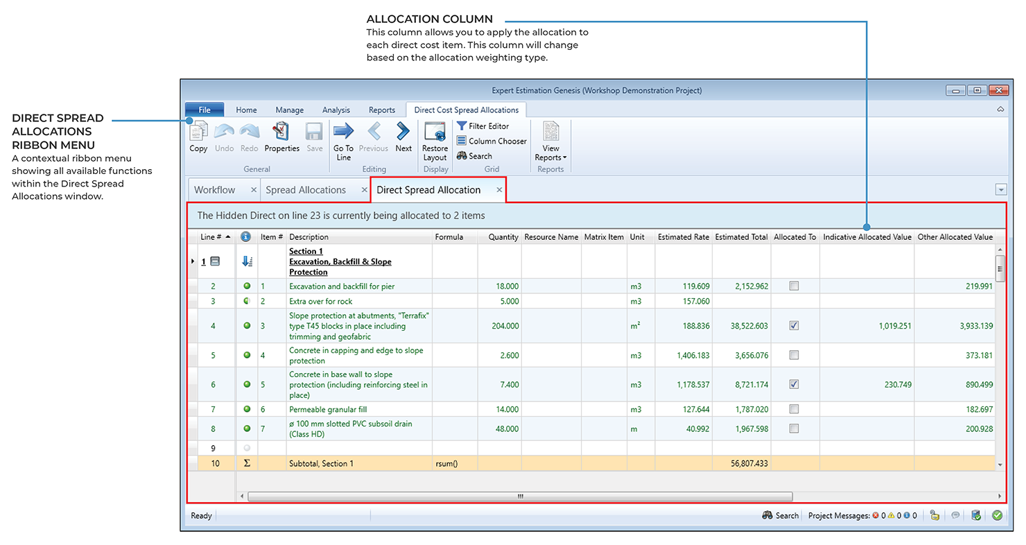 The Allocated To column allows you to tick the checkboxes next to each Direct Cost Item to proportionately spread the value of the Hidden or Overhead item. This column is only available when the weighting of the allocation is set to Item Value.